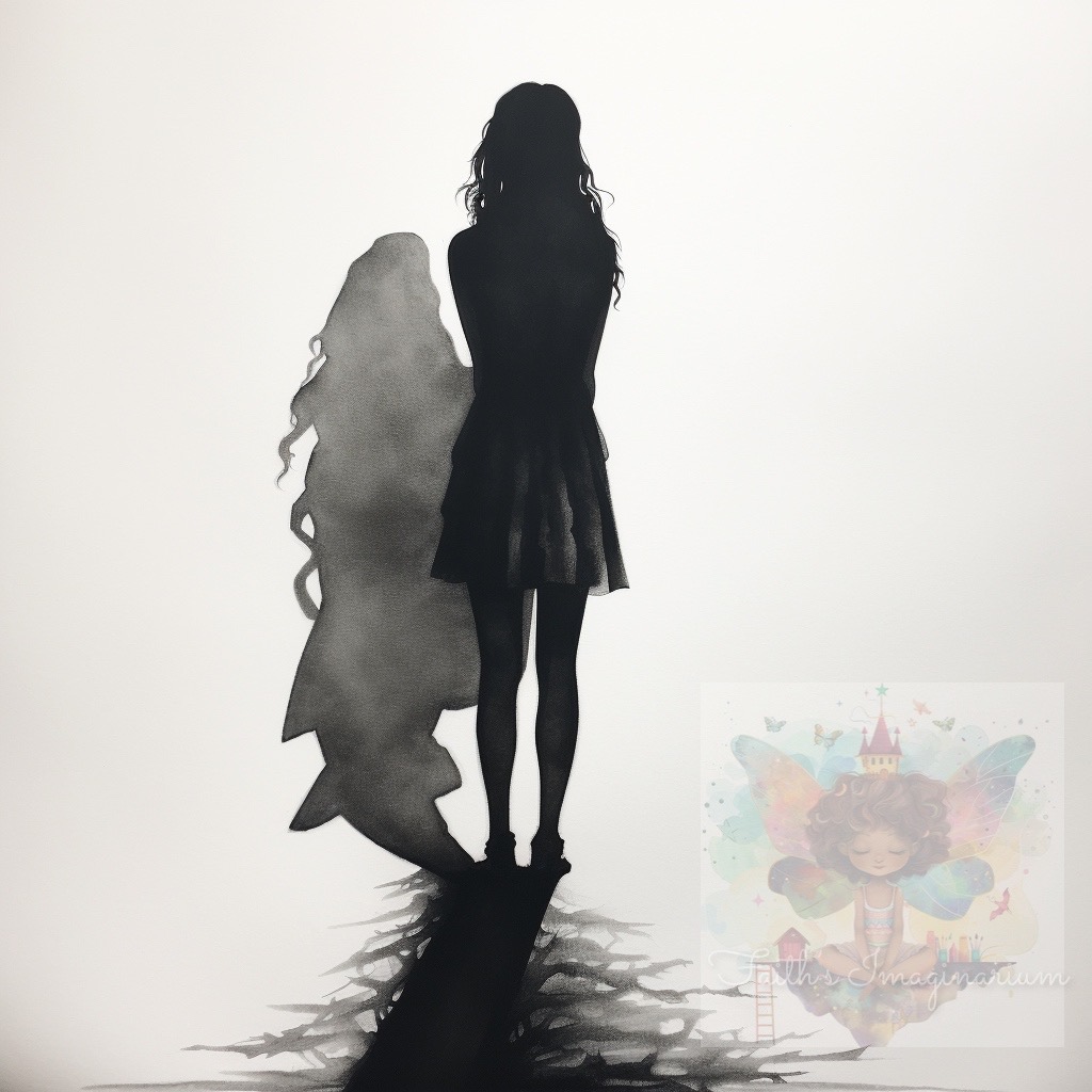 Sketch a silhouette and a shadow of a female